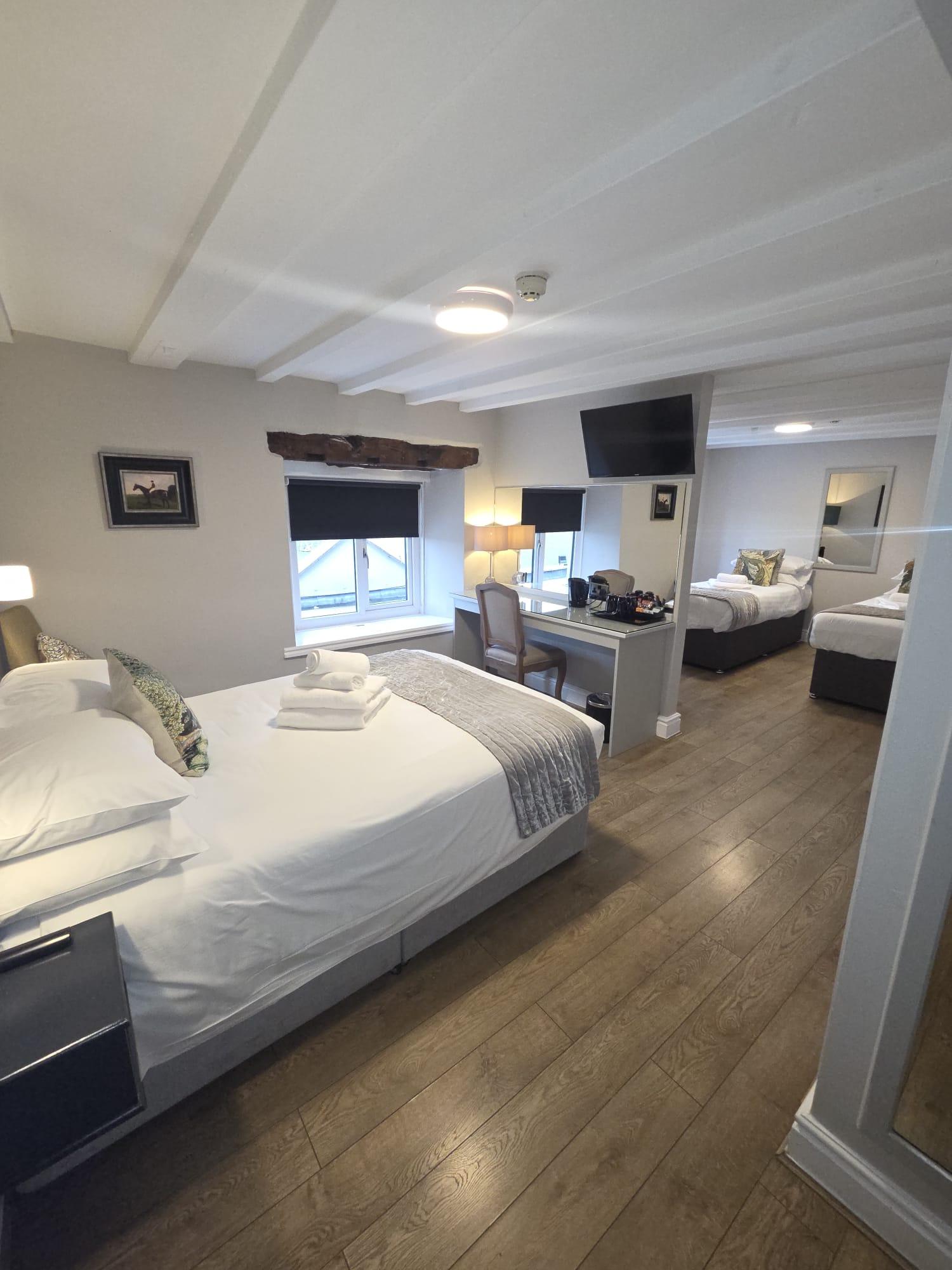 Spacious family room suitable for 2 adults and 2 children sharing, with semi-partition for additional privacy. Wake up to stunning views of Lancaster Canal and surrounding countryside.